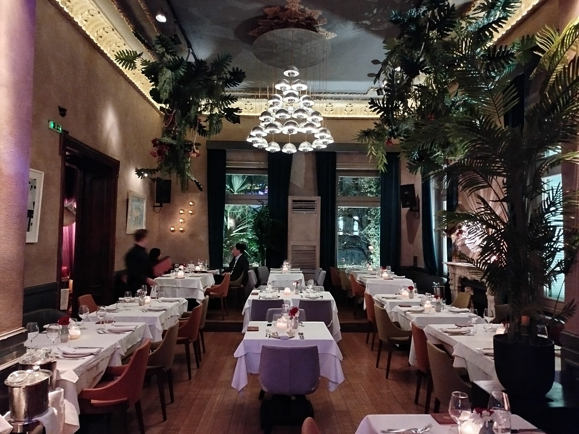 Τα τραπεζομάντηλα στα λευκά τραπέζια, οι αναπαυτικές καρέκλες και ο χαμηλός φωτισμός δημιουργούν μια ατμόσφαιρα αριστοκρατική και συνάμα φιλόξενη, ενώ η μουσική και τα διακοσμητικά στοιχεία προσθέτουν μια δόση glamour. Ο χώρος του δείπνου συνδέεται αρμονικά με το μπαρ, προσφέροντας μια διακριτική νότα κοσμοπολίτικου lounge.