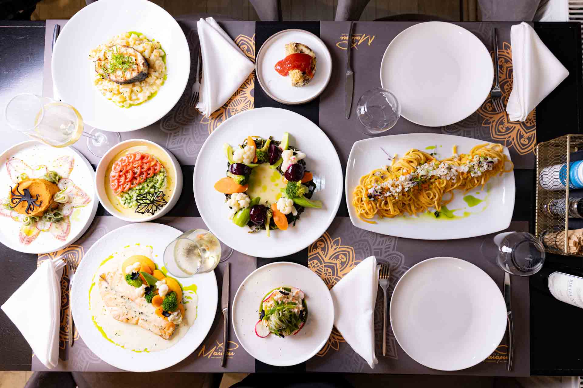 Μια ταραμοσαλάτα ή η αθηναϊκή (μια συνταγή αγαπημένη της παλιάς Αθηναϊκής τάξης), τα ντολμαδάκια γιαλαντζί, συνυπάρχουν στο μενού με carpaccio τόνου, με ραβιόλια γεμιστά με καραβίδες και αχινό, με ένα φιλέτο από ψάρι ημέρας με πουρέ σελινόριζας ή με ψάρια ημέρας ψημένα πολύ σωστά.