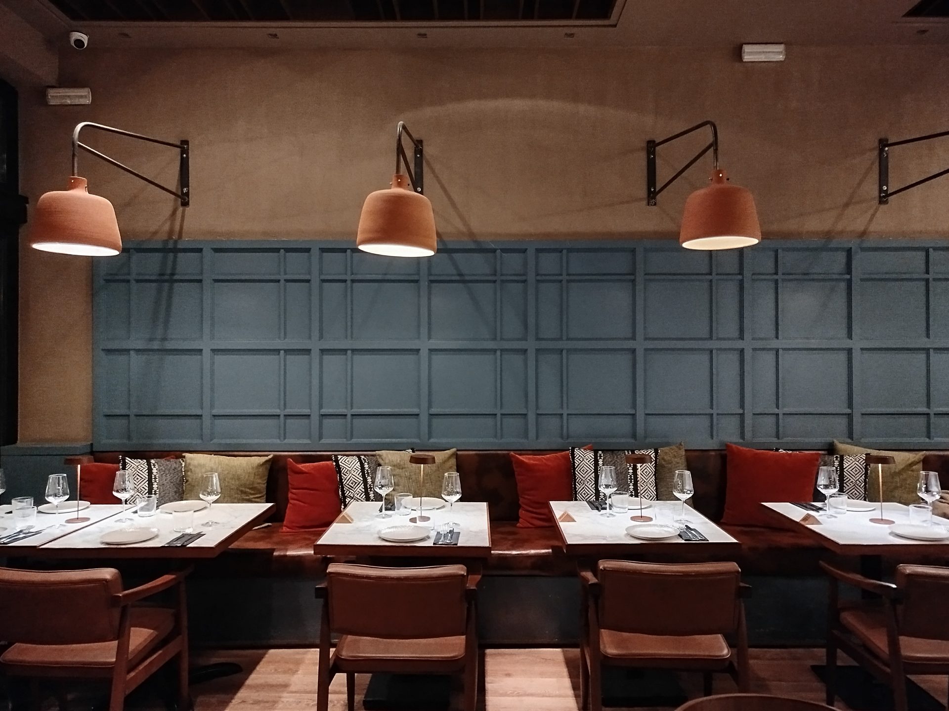 Ο χώρος είναι ζεστός και φιλόξενος, με κυρίαρχα στοιχεία το ξύλο, τα γήινα χρώματα και τον χαμηλό, θερμό φωτισμό. Τα μαρμάρινα και ξύλινα τραπέζια, μαζί με την προσεγμένη διακόσμηση, δημιουργούν ένα περιβάλλον κομψό, χωρίς ίχνος επιτήδευσης.