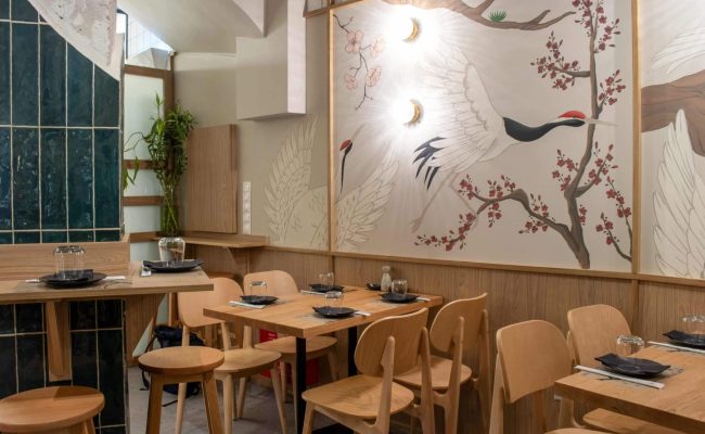 Ο χώρος απλός: ξανθό ξύλο που ντύνει τη μπάρα και τον τοίχο-βιβλιοθήκη με τα διάφορα αντικείμενα στα ράφια: βεντάλιες, οριγκάμι και εξαιρετικά ιαπωνικά whisky. Η μουσική σε jazz και lounge τόνους έχει κάτι από τη μοντέρνα ατμόσφαιρα των νεοϋορκέζικων sushi bars.