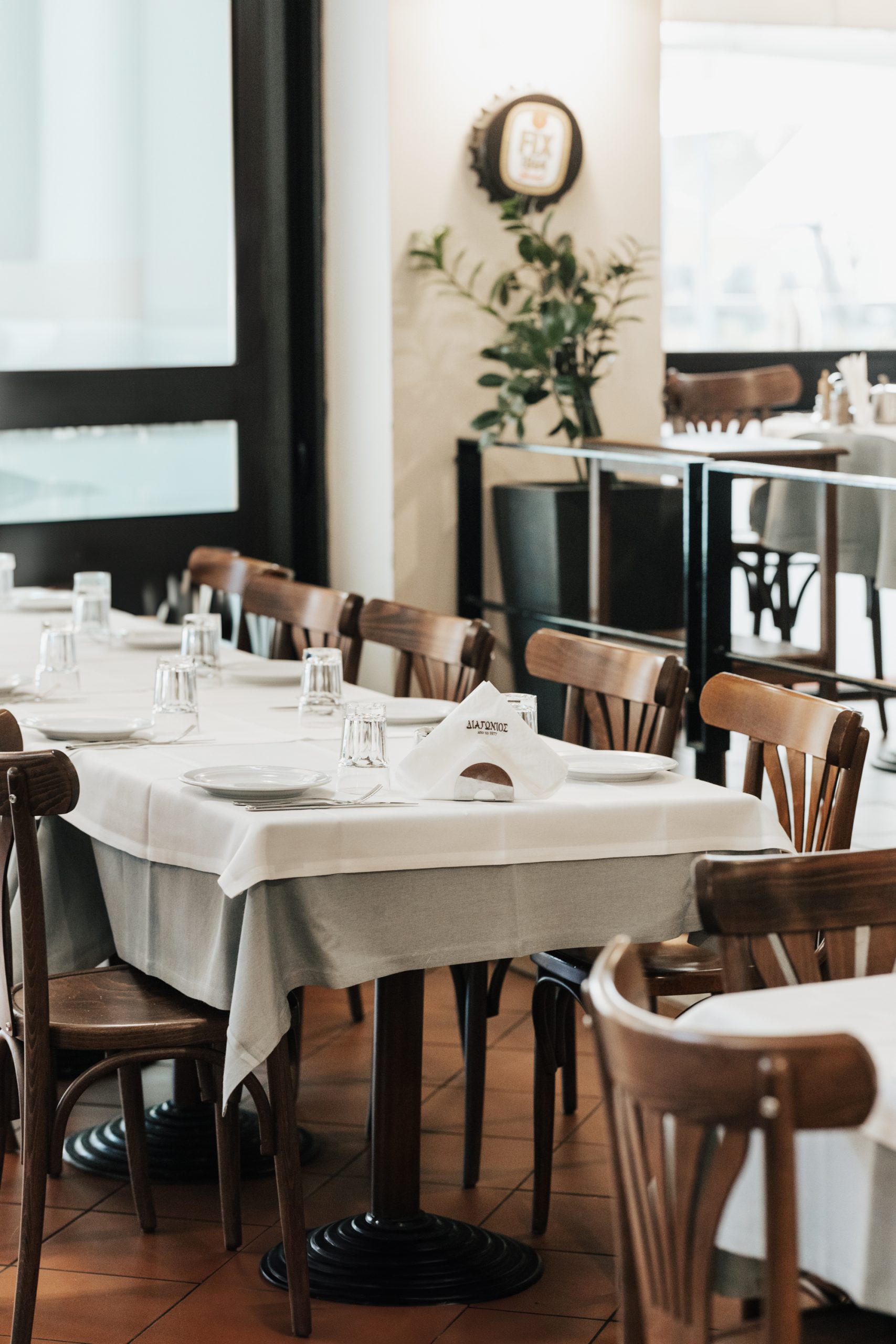 Όσο για τους αμετανόητους των ψητών κρεάτων, προτείνεται μία συλλογή η οποία σας επιτρέπει να κάνετε την επιλογή που σας ενδιαφέρει. Όλη αυτή η παρέλαση των γεύσεων παραπέμπει σίγουρα σε περιβάλλον ταβέρνας. Λάθος. Η Διαγώνιος είναι ένας αστικός χώρος της εποχής του μεσοπολέμου, ή πιθανόν και λίγο αργότερα, ο οποίος απευθύνεται σε όλους όσους αγαπούν το καλό κρέας μεταξύ των οποίων ανήκει και η γνήσια, αστική τάξη της πόλης. Αν είστε επισκέπτες, θα είναι παράλειψη αν δεν την επισκεφθείτε. Τελικά η Διαγώνιος είναι ένα αξιοθέατο. Κάτι σαν το Λευκό Πύργο της γεύσης.