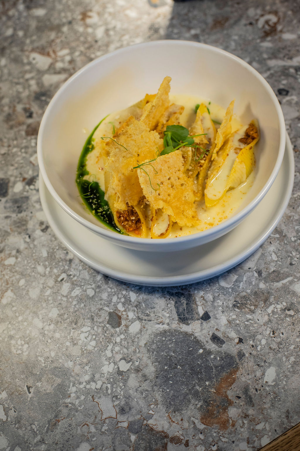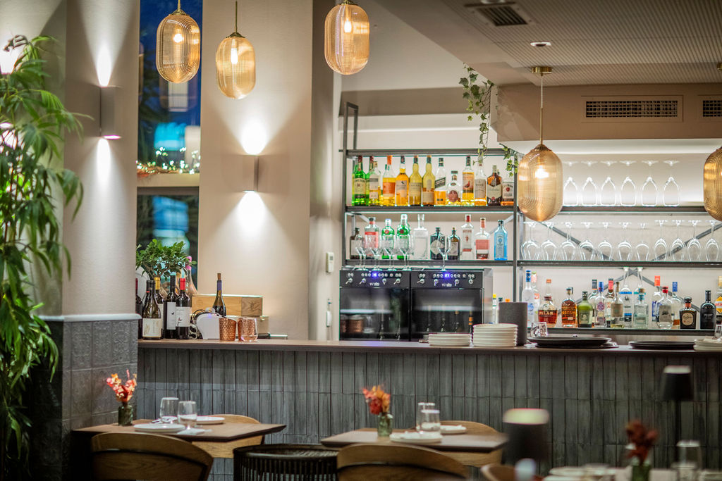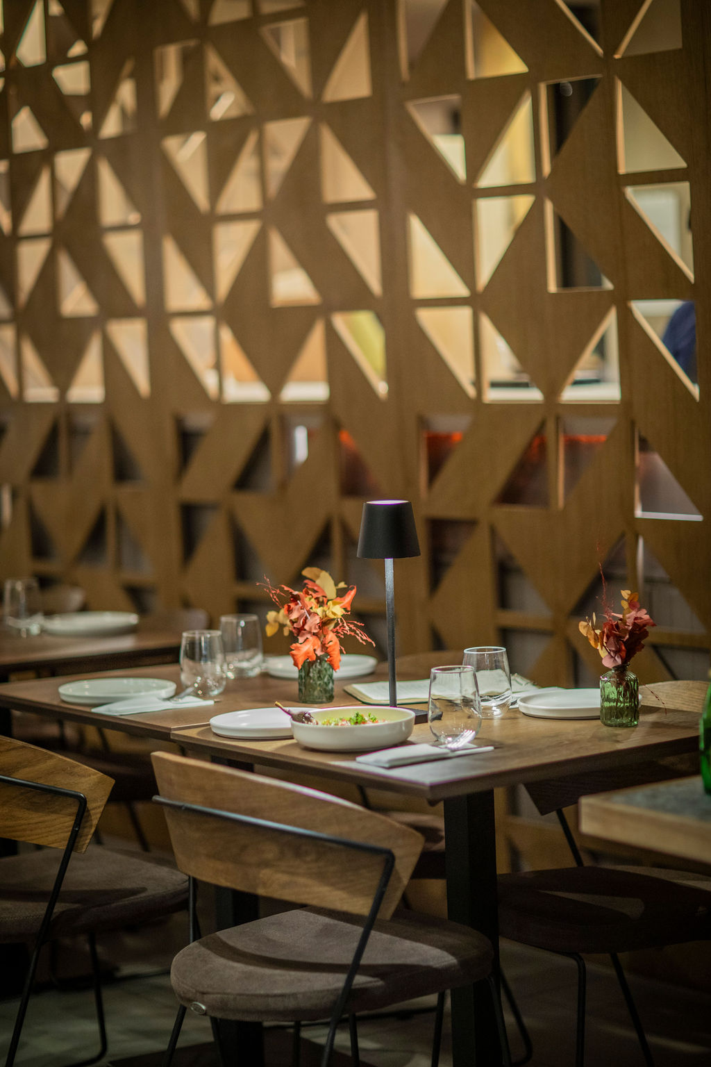 Όλα αυτά θα τα απολαύσετε σε ένα μοντέρνο, δροσερό και ανάλαφρο χώρο που σε κερδίζει από την πρώτη στιγμή, διαθέτοντας τραπέζια τόσο στην εσωτερική, μίνιμαλ αλλά cosy σάλα, όσο και στον εξωτερικό χώρο, κάτω από μια μοντέρνα πέργκολα. Το ξύλο και οι γήινοι τόνοι κυριαρχούν στον μοντέρνο, φωτεινό χώρο με τις μεγάλες τζαμαρίες και την κατάφυτη οροφή να δημιουργούν μια αίσθηση χαλάρωσης και ευφορίας. Ένα ξύλινο πλέγμα χωρίζει την κουζίνα από τη σάλα και το μπαρ, σε ένα καλοδουλεμένο εστιατόριο που δίνει προσοχή στις λεπτομέρειες και στη φιλοξενία, προσφέροντας μια εξαιρετική συνολική εμπειρία.