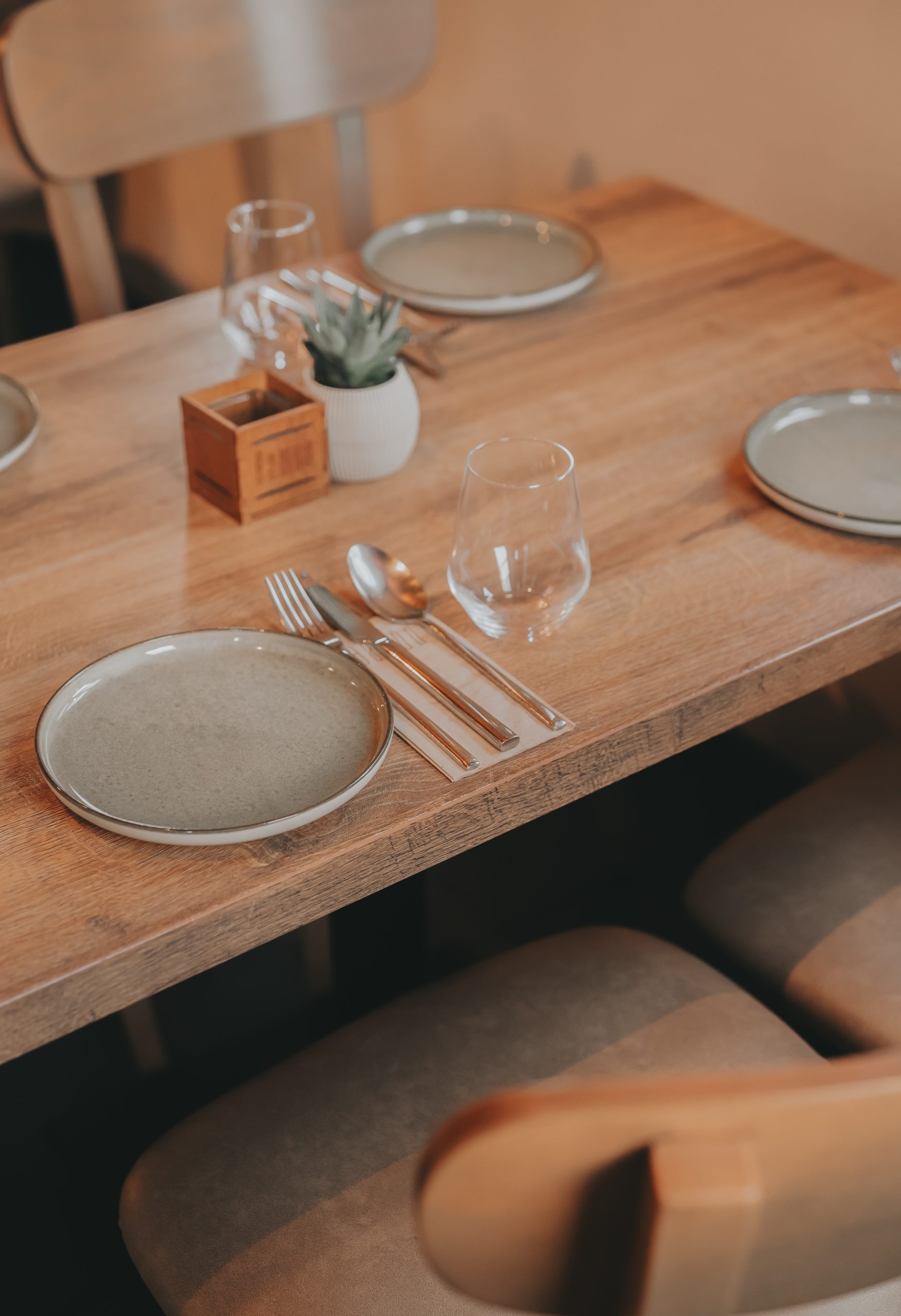 Μπαίνοντας στο χώρο η πρώτη εντύπωση είναι ηρεμία. Το ξύλο και τα γήινα χρώματα που δίνουν τον τόνο στο εστιατόριο δένουν με το πράσινο των φυτών και το συμπληρώνουν.Το συνολικό αποτέλεσμα είναι ένας χώρος φιλοξενίας που συνδυάζεται άριστα με γευστικές προτάσεις, πειστικά συγγενείς με την Ηπειρώτικη παράδοση αλλά και με εξελικτικά στοιχεία που την συνδέουν με τις γεύσεις του σήμερα.